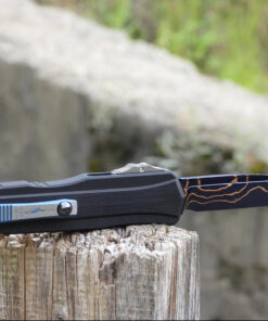 The dual fuel drive train system ensures smooth and effortless deployment, making this OTF knife one of the easiest to operate. So smooth your Grandmother can operate