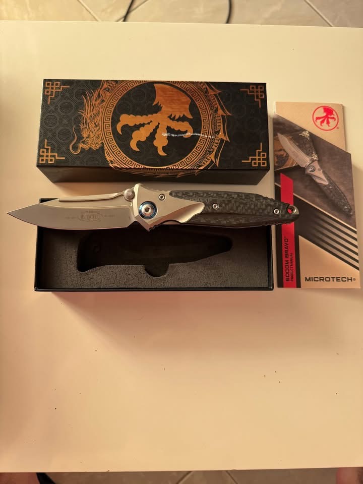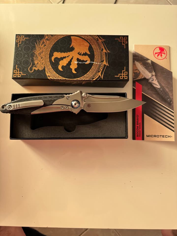- Collaboration build: Designed by Microtech, manufactured by Rike Knife in China using high-end materials like titanium and carbon fiber .