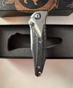 - Features a DLC-coated blade and titanium/carbon fiber handle with a sleek black finish, at roughly 4.67 oz .
